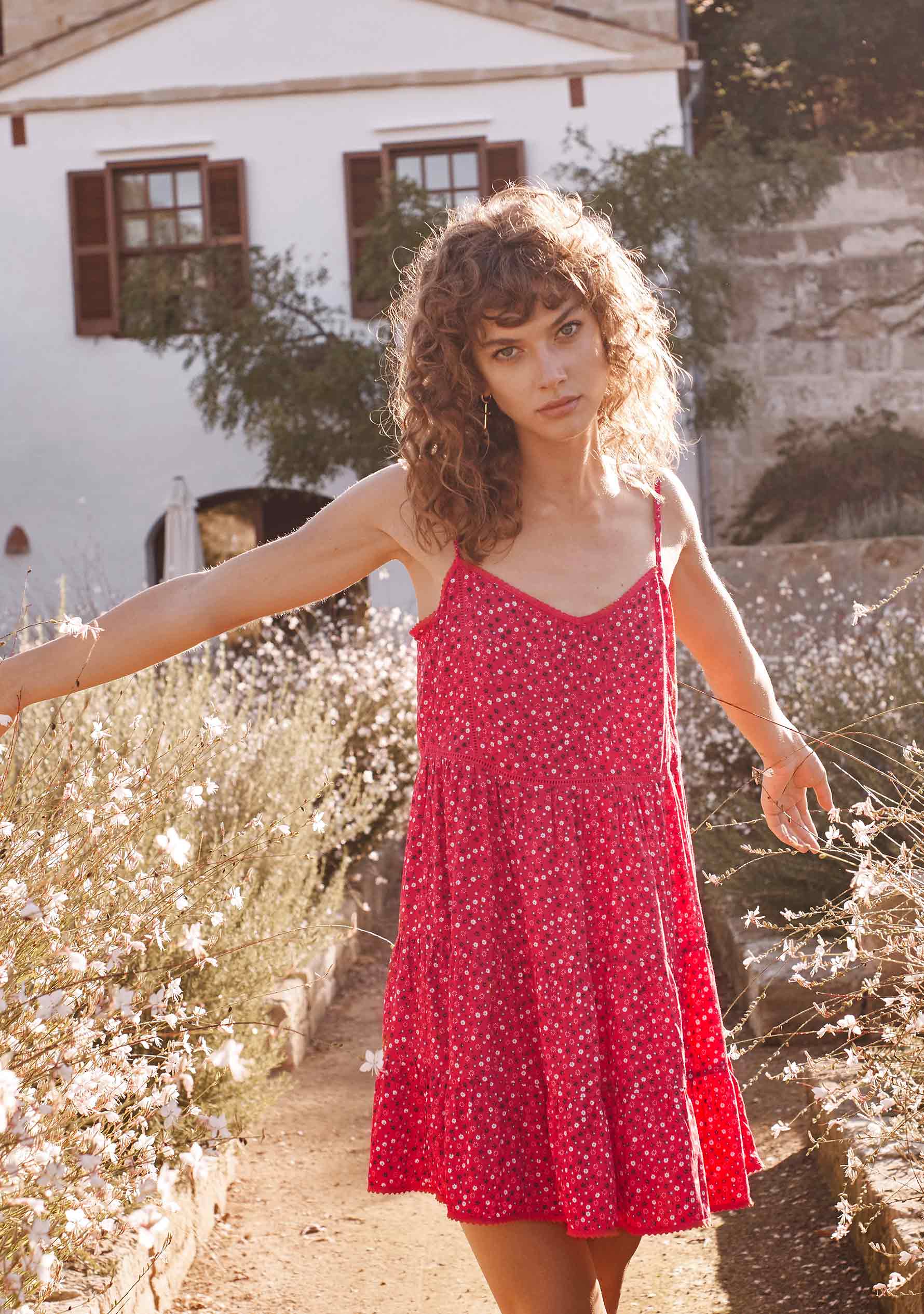 The warm breeze. the early mornings and the sun-kissed smiles – the Daphne Easy Days Mini Dress takes you back to your favourite holiday moments. Cut from soft rayon in a classic floral print. the comfortable dress features trim details. adjustable straps. a button-opening at the back and a relaxed fit.