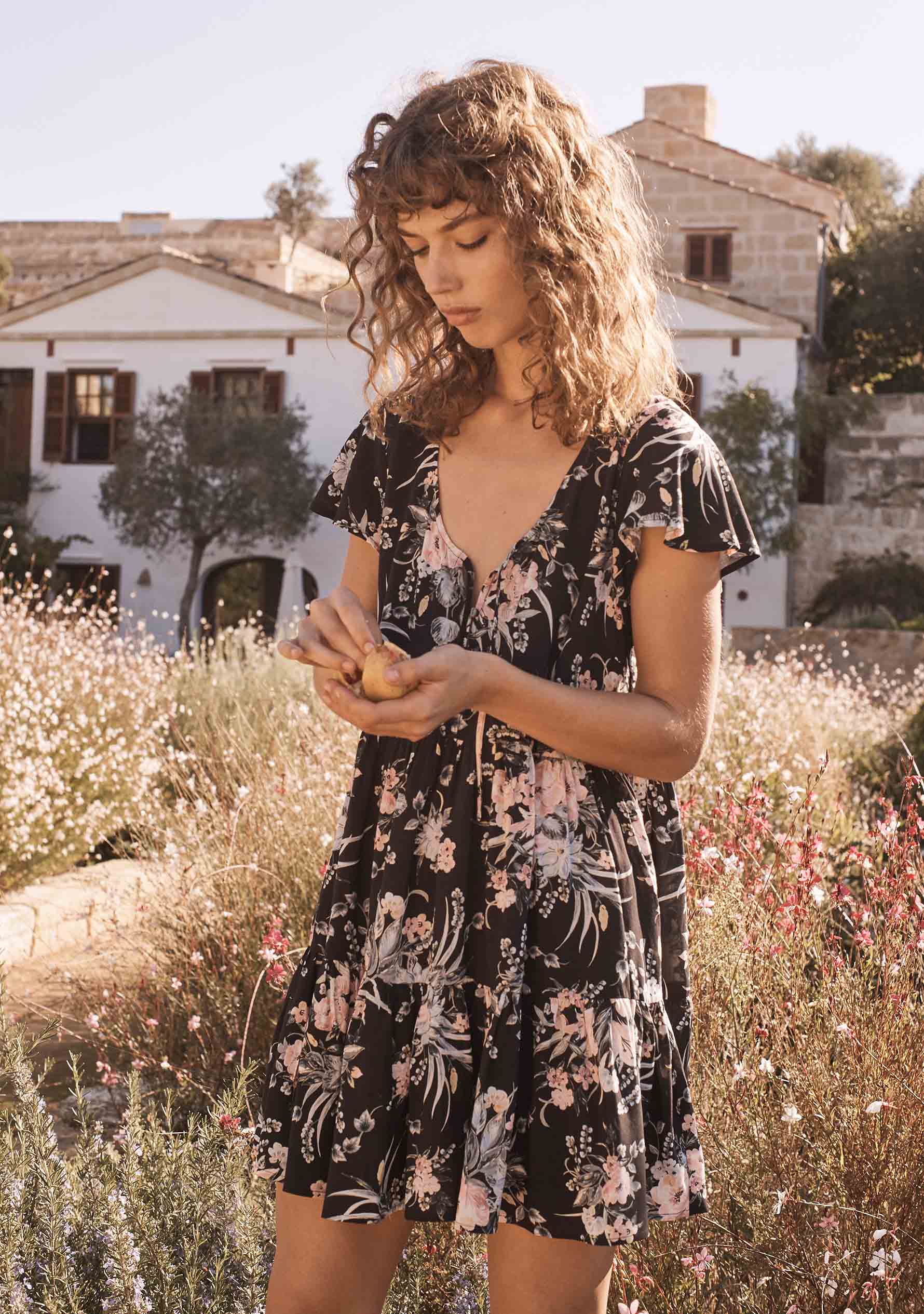 Made with a sense of ease that never gets old. The pull-on-and-go Scarlett Babydoll Mini Dress is crafted in the softest rayon with a vintage-inspired floral print. frilled sleeves. tiered skirt and button-down front with a tie.