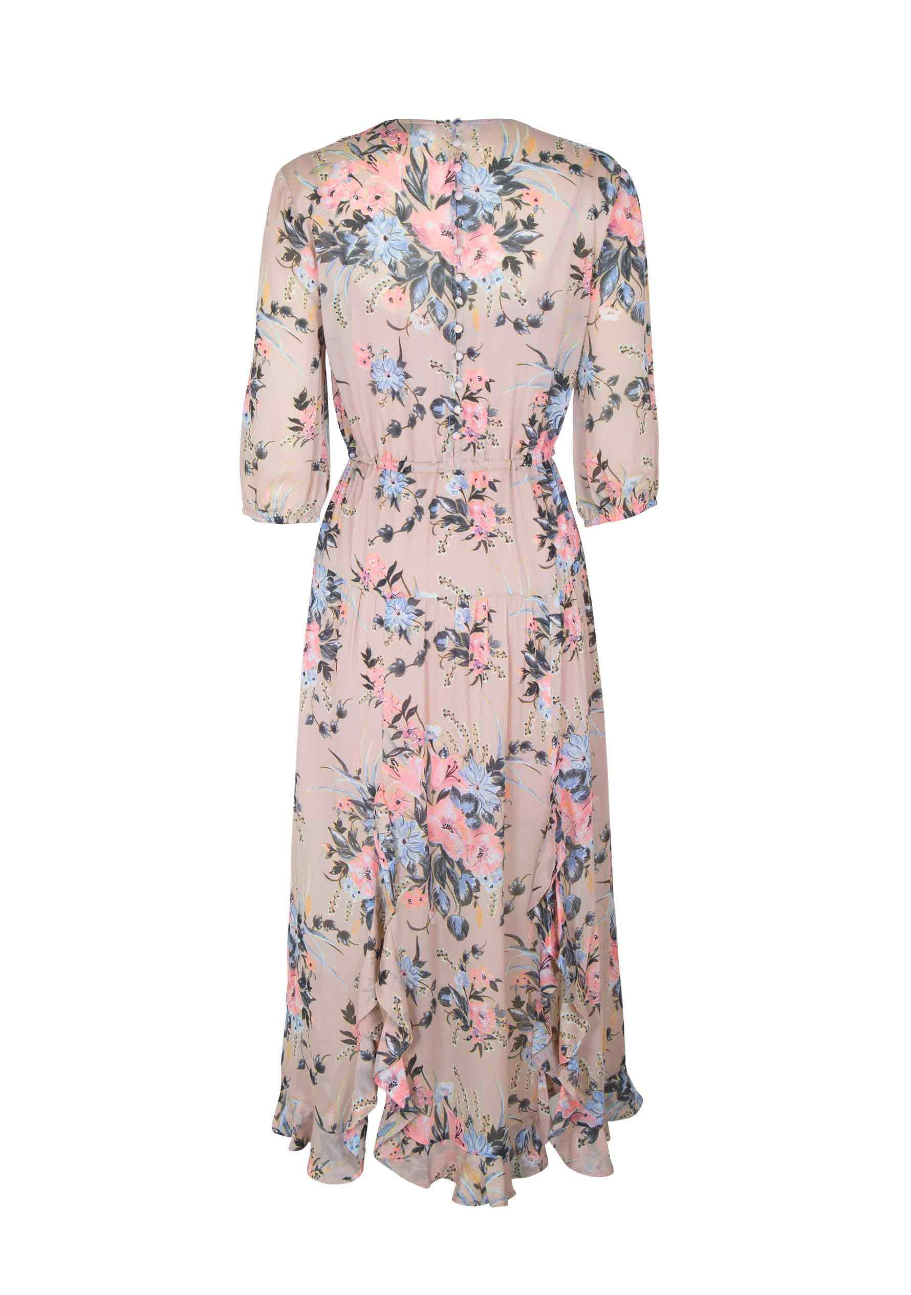 Destined for loved-up days. the Scarlett Fine Dress is made of soft. breezy viscose in a romantic floral print. With its drawstring waist. ¾ sleeves and frilled front splits. it features the right amount of feminine details. with the gorgeous button up detailing on the back adding a touch of practical romance to this piece.
